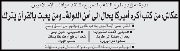 السلام عليكم مشكورين على التغطيه وصراحه كفيتوا ووفيتوا بس اللي احب أسأله الوزيره نوريه الصبيح صار لها سنه من امسكت الوزاره وما قلتوا شي وتكلمتوا عن اللباس الشرعي واهيا مو محجبه وما اعترضتوا ولا سويتوا ندوات واهيا تروح وترد بالمجلس بدون حجاب وينكم عنها اكثر من سنه والا علشان المجلس راح يحلونه قمتوا تتحركون وهذا اللي اكده الكثير من النواب منهم خلف دميثير وغيره من خلال لقاءهم بقناة الوطن وبعدين سعد الشريع استجوب نوريه الصبيح ونجحت باستجوابها واهيا ما اخذت للحين قرارها في البنت اهيا صح مسؤوله عن كل فرد بالوزاره بس انطروا اهيا شنو راح اتسوي انا ما ادافع عنها بس اقول الحق لازم الوزير ياخذ فرصته مو على اوله تحاسبونه على اخطاء اللي قبله وموضوع الولايه مثل ما قلت قبل ليش ما تحركتوا قبل هذي كلها اساليب معروفه ساكتين على معصومه المبارك واهيا اقدم من نوريه الصبيح ولا قلتوا الولايه اشمعنا الحين؟؟؟؟؟ انا أأيد كلام الشرع كيف ماكان بس استفساري ليش الحين ؟ وعلى فكره المنطقه العاشره متروسه بالبدو والإسلاميين اللي لازالوا لا يتقبلون ولاية المرأه سؤال الديره متروسه من الإسلاميين ليش ما سووا الندوه خارج العاشره كل هذا علشان يحصلون على تأييدهم في المرحله المقبله أسلاميين على عينا وراسنا بس مو على حسب جدول انتخاباتهم أخيرا انا مو ليبراليه ولا حكوميه انا كويتيه و عجميه يعني اللي يعز عليكم يعز علينا |