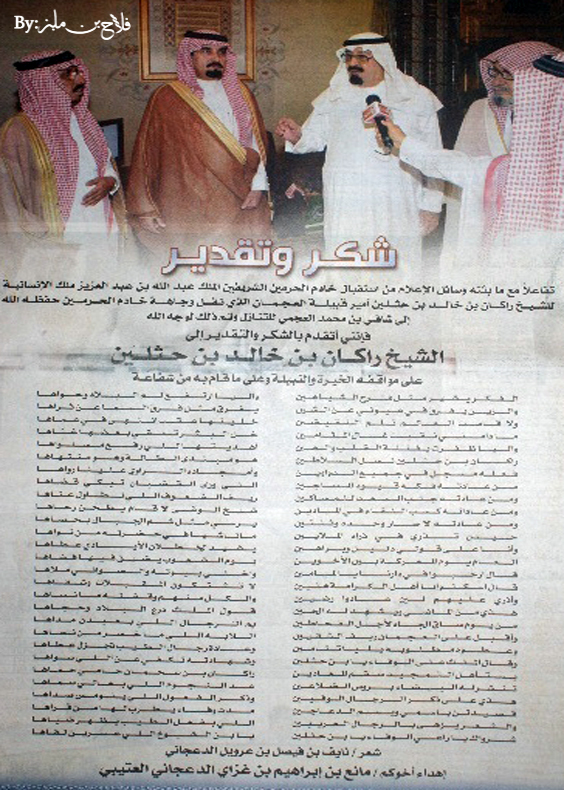 راكان بن حثلين نسل السلاطين ... هو مبتدى الطالة وهو منتاها