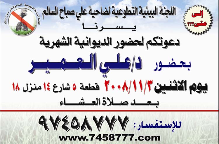 دعوه لحضور الديوانية الشهرية للجنة البيئية لأم الهيمان