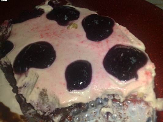 بعد ذلك تخلط المقادير القيمر والكيري ودريب ويب جيدا ,, ثم تسكب على الكيك ,,