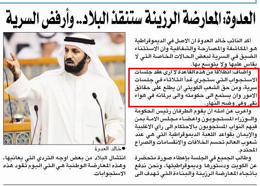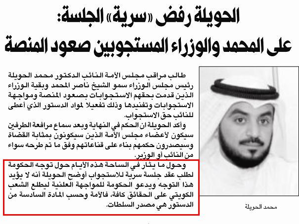 من حق الشعب الكويتي أن يطلع على على الحقائق الأمور ) في أستجواب المسلم لرئيس الوزراء