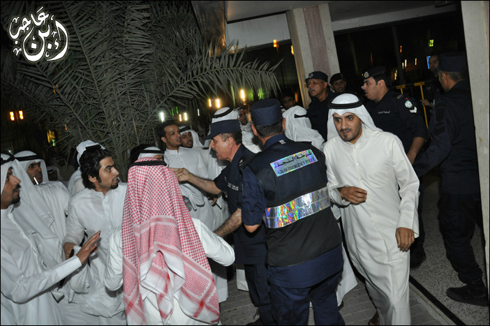 الكويتي برمته وهي فضيحة الودائع المليوينة، واللجوء إلى أسلوب الرشوة وشراء الذمم.. إزاء ذلك تواجد رجال الأمن بكثافة في