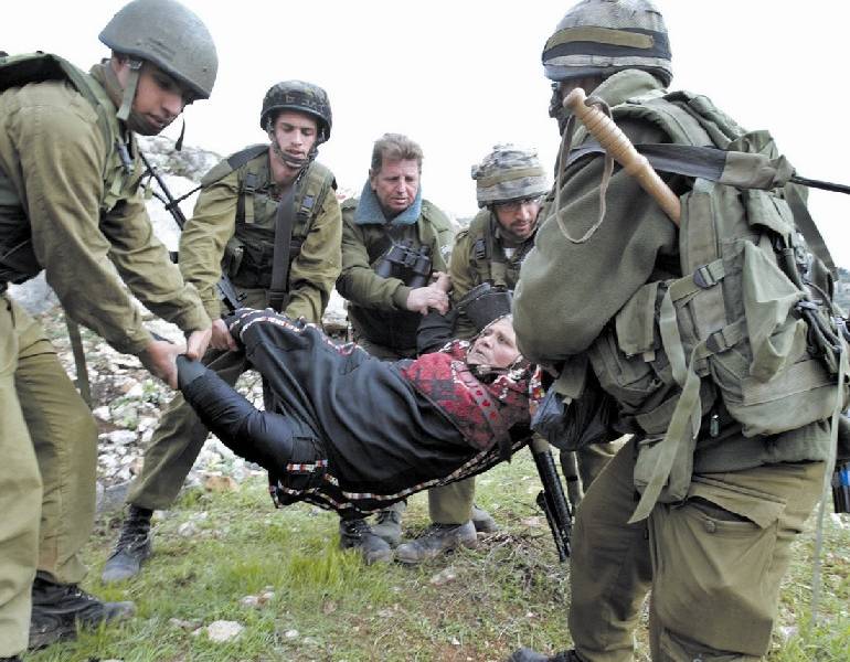 هذه صورة امرأة مسلمة عربية فلسطينية أبية تمسكت بدينها وشرفها وعرضها، وأبت أن تغادر أرضها لتتم مصادرتها من قبل جيش الإحتلال الإسرائيلي، وزرعت جذورها في عمق هذه الأرض، غير آبهة بالتهديد والإرهاب لأن في حقها القوة التي لا يمتلكها خمسة من إخوان القردة والخنازير ولا حتى كل جيشهم، رغم أسلحتهم وبأسهم، وبطشهم، وحقارتهم، فنظراتها ترعبهم، وصمودها يزلزل الأرض تحت أقدامهم.