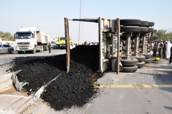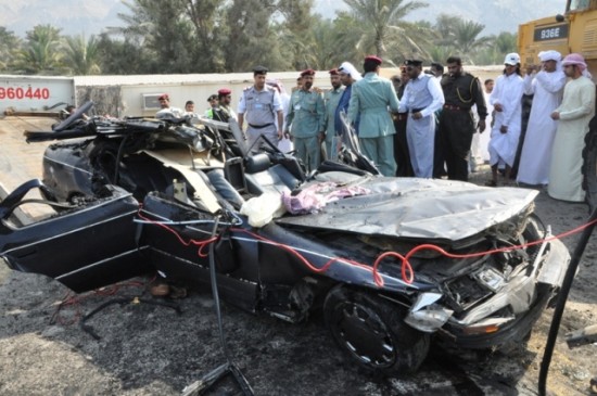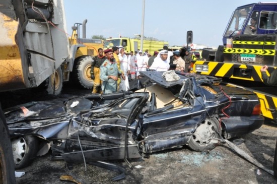 نجا المواطن الإماراتي أحمد محمد الشحي البالغ من العمر 25 عاماً، ، من الموت، على الرغم من أن شاحنة ثقيلة محملة بمادة القطار سقطت بقوة على سيارته الصغيرة في شارع الرمس برأس الخيمة.