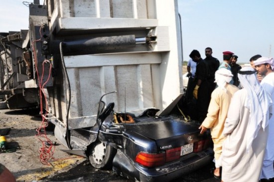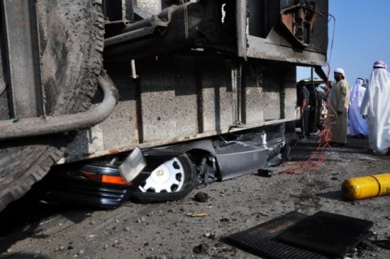 Arrow مواطن إماراتي نجا من الموت بعد سقوط صندوق شاحنه على سيارته / صور