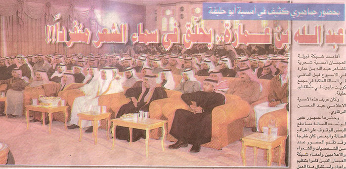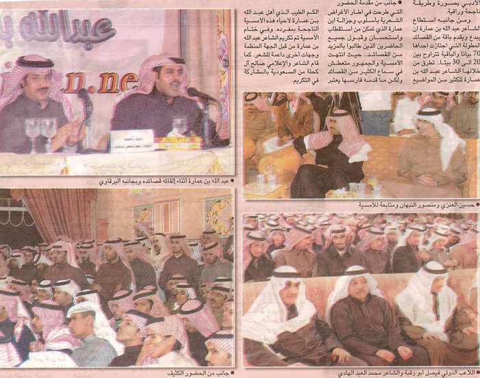 كل الشكر والتقدير للأخ القدير مهدي العجمي معد الصفحة الشعرية في جريدة الوطن على هذه التغطية |