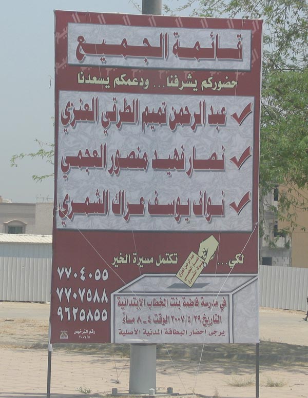 أعزائي الكرام ، السلام عليكم و رحمة الله و بركاته تشرفنا في ديوانية شبكة قبيلة العجمان بإستقبال الأخ الفاضل نصار فهيد منصور العجمي مرشح القبيله الوحيد لإنتخابات جمعية الصباحيه التعاونيه و التي يخوضها متحالفاً مع قائمة الجميع و التي تمثل التجمع و تشمل إثنين من الأخوه الكرام من تجمع القبائل و هم 1 ــ عبد الرحمن تميم الطرقي العنزي 2 ــ نواف يوسف عرّاك الشمري بالإضافه لأبو فهد ، الأخ / نصــار و الجدير بالذكر أن الأنتخابات ستجرى يوم الثلاثاء الموافق 29 / 5 / 2007 في مدرسة فاطمه بنت الخطاب في الصباحيه و كان للزميل ناصر بن حمود " أبو بدر " هذا اللقاء مع مرشحنا س 1 - السيره الذاتيه . الاسم / نصار فهيد منصور العجمي العمر / 43 سنه الوظيفه / موظف الشئون الهندسيه - بلدية الكويت الحالة الاجتماعية / متزوج س 2 - ماهي أول الخطوات أو الأهداف التي رسمتها في حال نجاحك في الإنتخابات الرئيسيه؟ ج إصلاح الفساد المستشري في الجمعيه و تعديل أسعار السلع و زيادة أرباح المساهمين و العمل على تحسين الخدمات في المنطقه س 3 - ماهو رأيك في إرتفاع الأسعار في الجمعيات , وهل تعتقد بأن إدارة الجمعيه تستطيع وقف ذلك في حال نجاحك ؟ نعم نستطيع وقف ذلك ، و الأسعار في الجمعيات متفاوته من جمعيه لأخرى س 4 - هل ترى أي أخطاء في جمعية الصباحيه سواء في تنظيم الإداره أو في السوق المركزي تريد إصلاحها ؟ وماهي إن وجدت ؟ نعم يوجد أخطاء في جمعية الصباحيه ، و الإداره محتكره من فئه معينه و السوق غير منظم و يحتاج الى إعادة نظر ، و الجمعيه تفتقر الى مقومات النجاح س 5 - شبكة قبيلة العجمان واعضائها يتمنون لك التوفيق فهل من كلمه للشبكه واعضائها ؟ وندعوكم للتسجيل معنا في هذا المنتدى الذي يضم اكثر من 18000 عضو كل الشكر و التقدير لإدارة و أعضاء شبكة قبيلة العجمان على ما تقوم به من جهد لخدمة الجميع و تسليط الضوء على الفعاليات و الأحداث التي تهم أبناء القبيله بشكل خاص و الوطن بشكل عام ـــــــــــــــــــــــــــــــــــــــ صور إعلانات الحمله الإنتخابيه في شوارع الصباحيه ـــــــــــــــــــــــــــــــــ صور اللقاء المرشح / نصار فهيد العجمي في ديوانية الشبكه يستمع للحوار يتابع صفحة شبكة قبيلة العجمان على الأنترنت نظره للكاميرا يستمع لأبو بدر بعنايه و تركيز ينصت لبعض التوجبهات الأخويه من أبو فيصل ، عبدالله المتلقم عضو مجلس إدارة جمعية القرين التعاونيه السابق نقاش صريح مع عبدالله المتلقم و بدر ناصر بن حمود المرشح أبو فهد مع بدر بن ناصر الأخوان سالم بن حمود و فهاد بن خجمه أبو فالح ، عبدالله المعيكل رئيس مجلس إدارة جمعية ضاحية صباح السالم السابق مع حمود بن ناصر الأخوان طلميس بن نباش و فجري بن حجران الأخوان محمد بن مبارك العايد و محمد بن فهد آل حسين ـــــــــــــــــــــــــــــــــــ