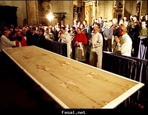 يعتقد ان هذه القطعة من القماش هي كفن السيد المسيح عليه السلام
